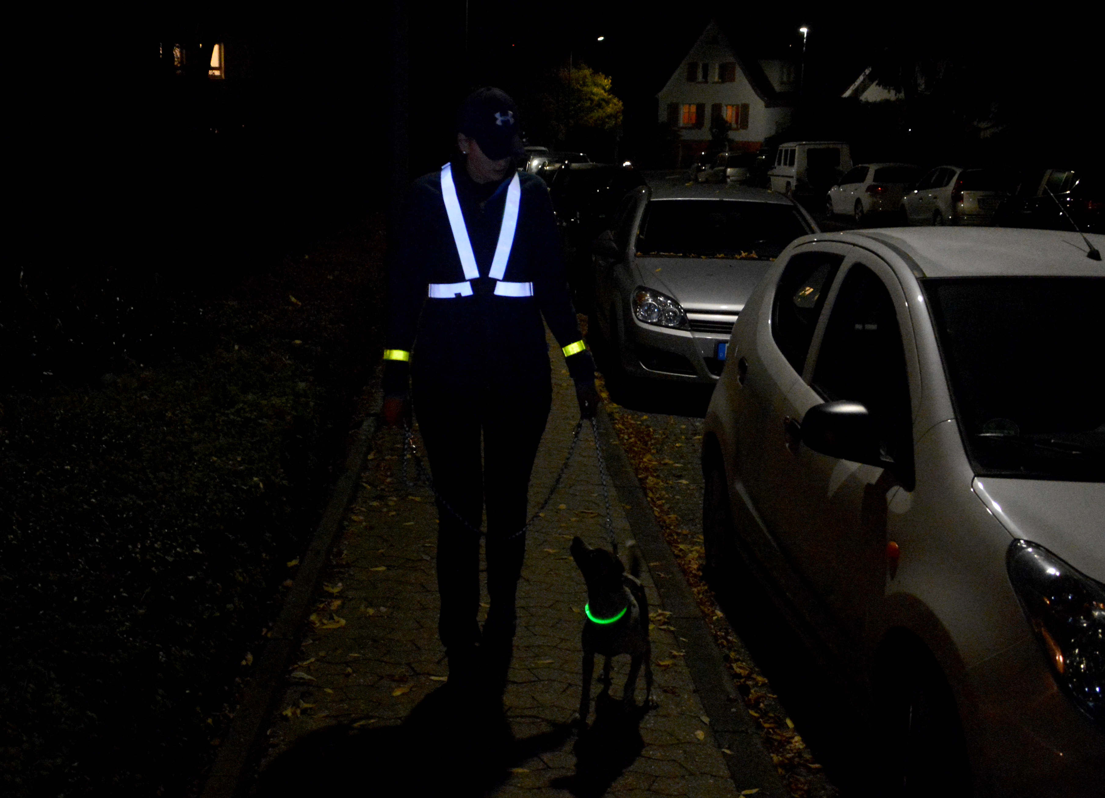 Die eigene Sicht sollte ebenfalls nicht vernachlässigt werden. Eine Taschenlampe hilft nicht nur dabei, im Dunkeln Unebenheiten zu erkennen und Schlaglöchern auszuweichen, sondern ist auch oft eine unerlässliche Hilfe bei der Suche und Entsorgung der Hinterlassenschaften des eigenen Hundes.