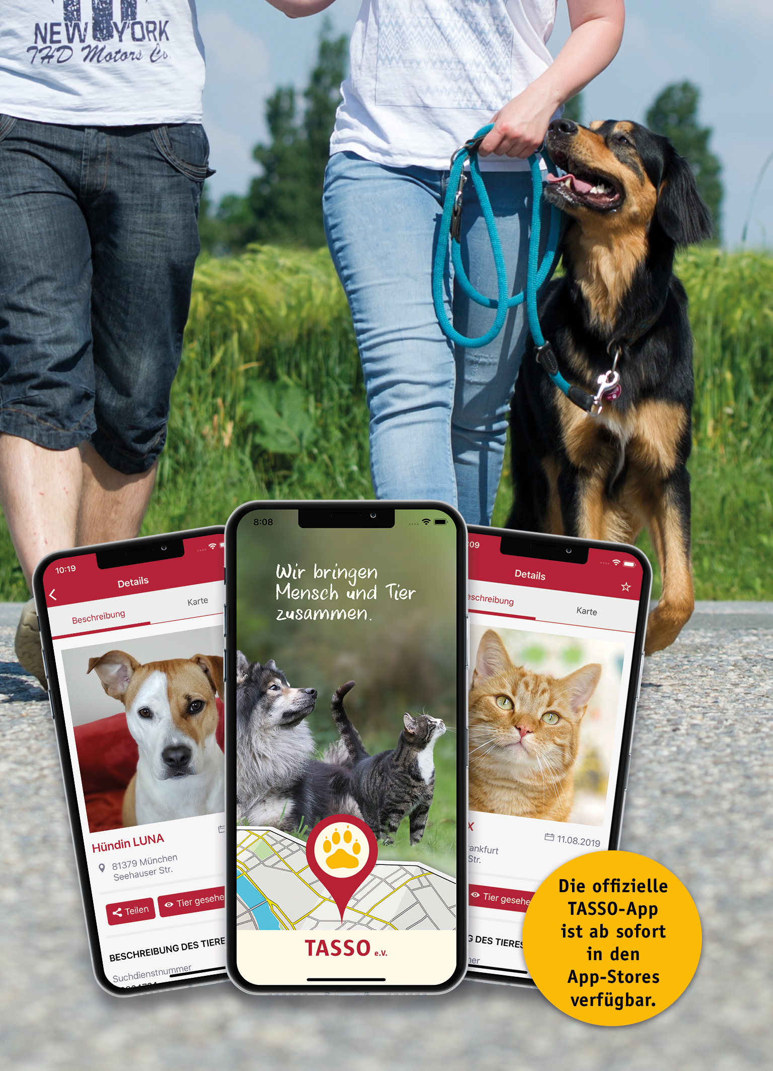 - Fund oder Sichtung eines vermissten Tieres direkt über „Tipp-Tapp“ an TASSO melden