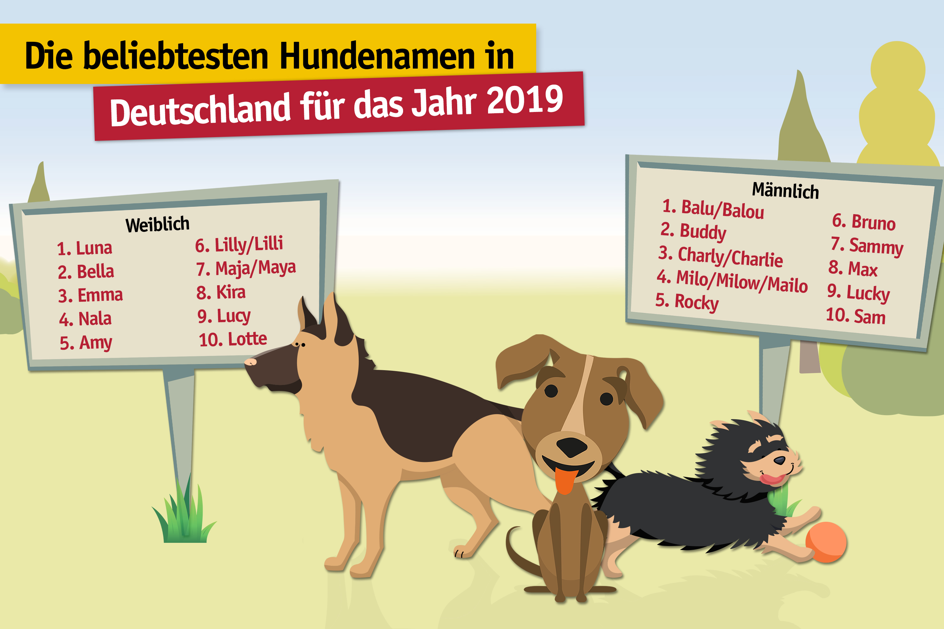 Sulzbach/Ts., 8. Januar 2020 – Seit mehr als einem Jahrzehnt führt Luna nun schon die Hitliste der beliebtesten Namen für Hündinnen an. Mit einem deutlichen Abstand lässt sie Emma und Bella, die sich im Wechsel um den zweiten Platz streiten, hinter sich. Die Tierschutzorganisation TASSO e.V., die Europas größtes kostenloses Haustierregister betreibt, hat in diesem Jahr erneut die beliebtesten Tiernamen der Deutschen ausgewertet.