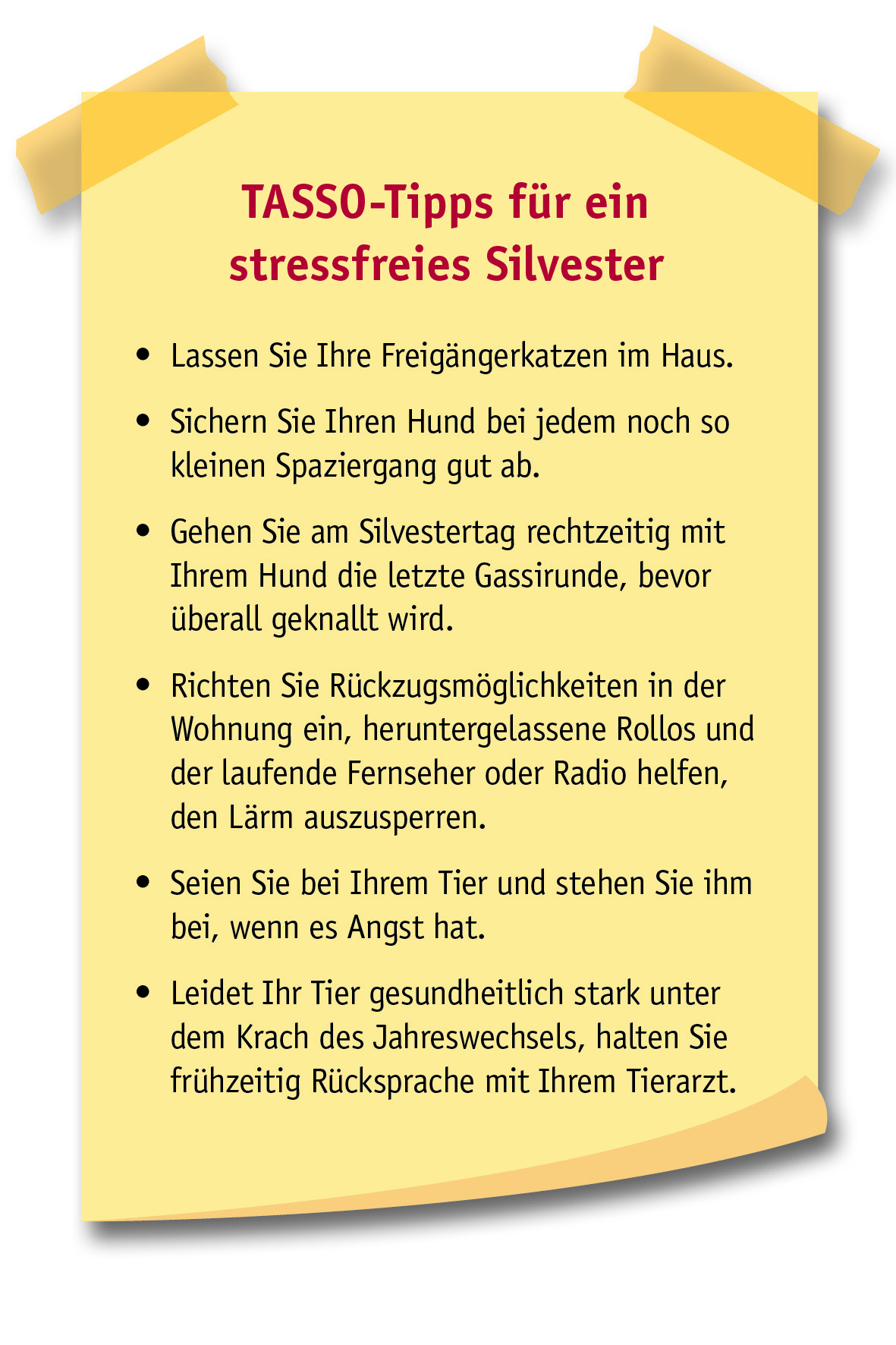 Hier finden Sie detaillierte Silvestertipps für Hund und Katze.