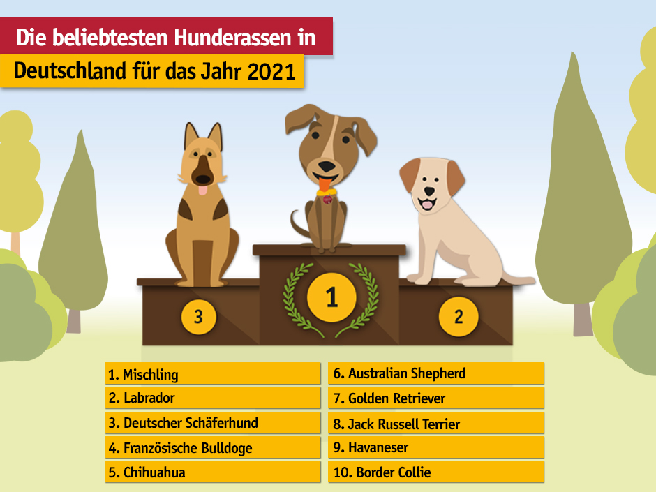 Die Statistiken zu den beliebtesten Hunderassen nach Städten und Bundesländern finden Sie unter www.tasso.net/hunderassen.