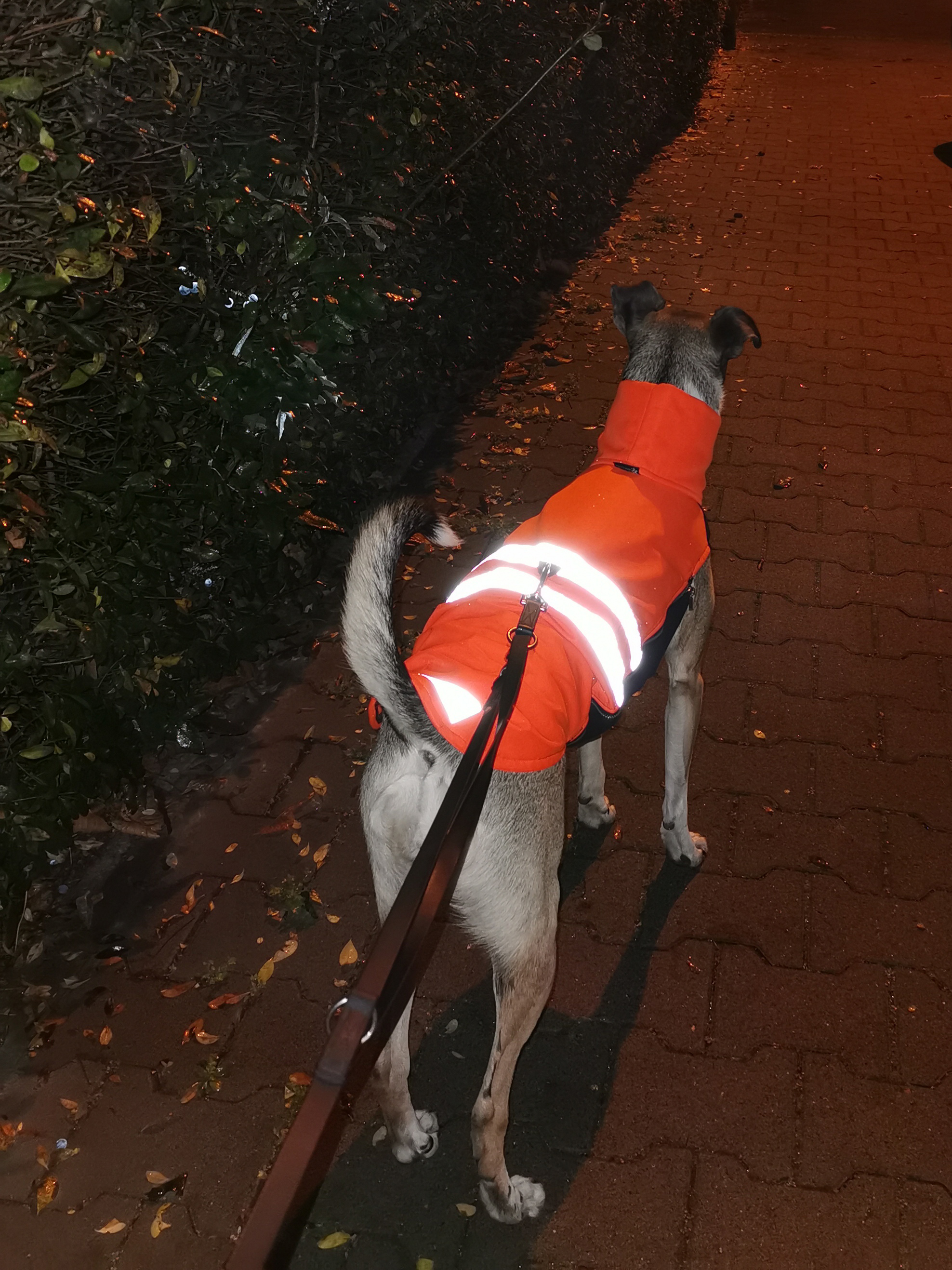 Ebenfalls gerne genutzt werden kleine Leuchtanhänger, die am Halsband oder Geschirr befestigt werden und entweder konstant leuchten oder blinken. Auch reflektierende Leinen und Geschirre sind geeignet, um den Vierbeinern zu mehr Sichtbarkeit zu verhelfen. Einige Hunde tragen sogar regelrechte Warnwesten, die sie davor bewahren, übersehen zu werden. Tragen Hunde bei Kälte oder Nässe Mäntel, ist es wichtig, dass auch diese gut sichtbar sind und zum Beispiel reflektierende Streifen haben.
