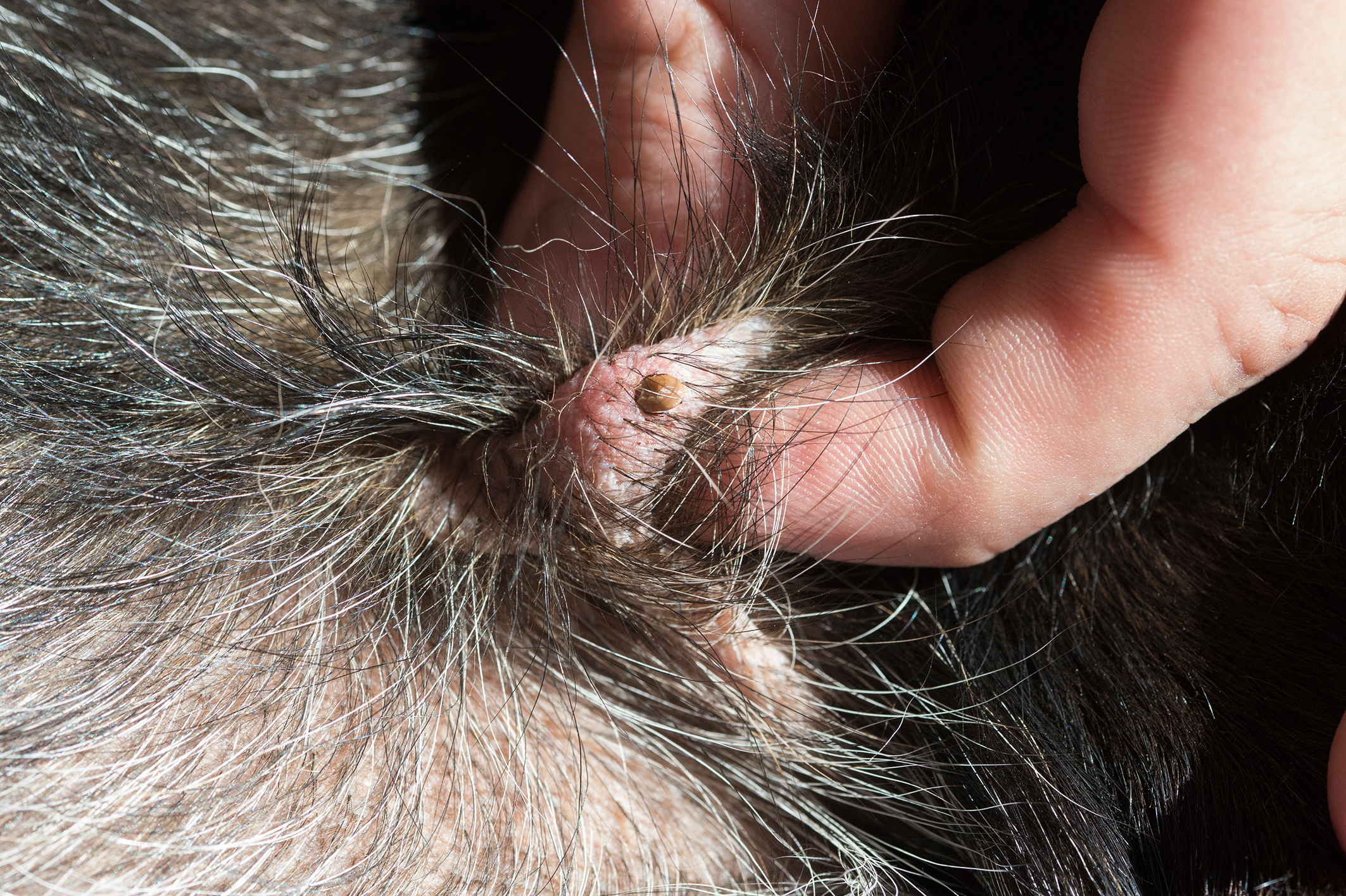 Hat sich eine Zecke bereits festgebissen, kann sie meist mit geeignetem „Werkzeug“ – beispielsweise einer Zeckenzange – und der richtigen Technik leicht aus dem Fell des Tieres entfernt werden. Tierhalter:innen sollten die Zecke möglichst hautnah greifen und langsam herausziehen. Bleibt der Kopf stecken, sollte an der betreffenden Stelle nicht gedrückt oder gequetscht werden. „In der Regel schafft es der Körper alleine, den Zeckenkopf abzustoßen. Wenn jedoch eine Rötung und Schwellungen auftreten, sollte das Tier besser dem Tierarzt vorgestellt werden“, rät Fach.