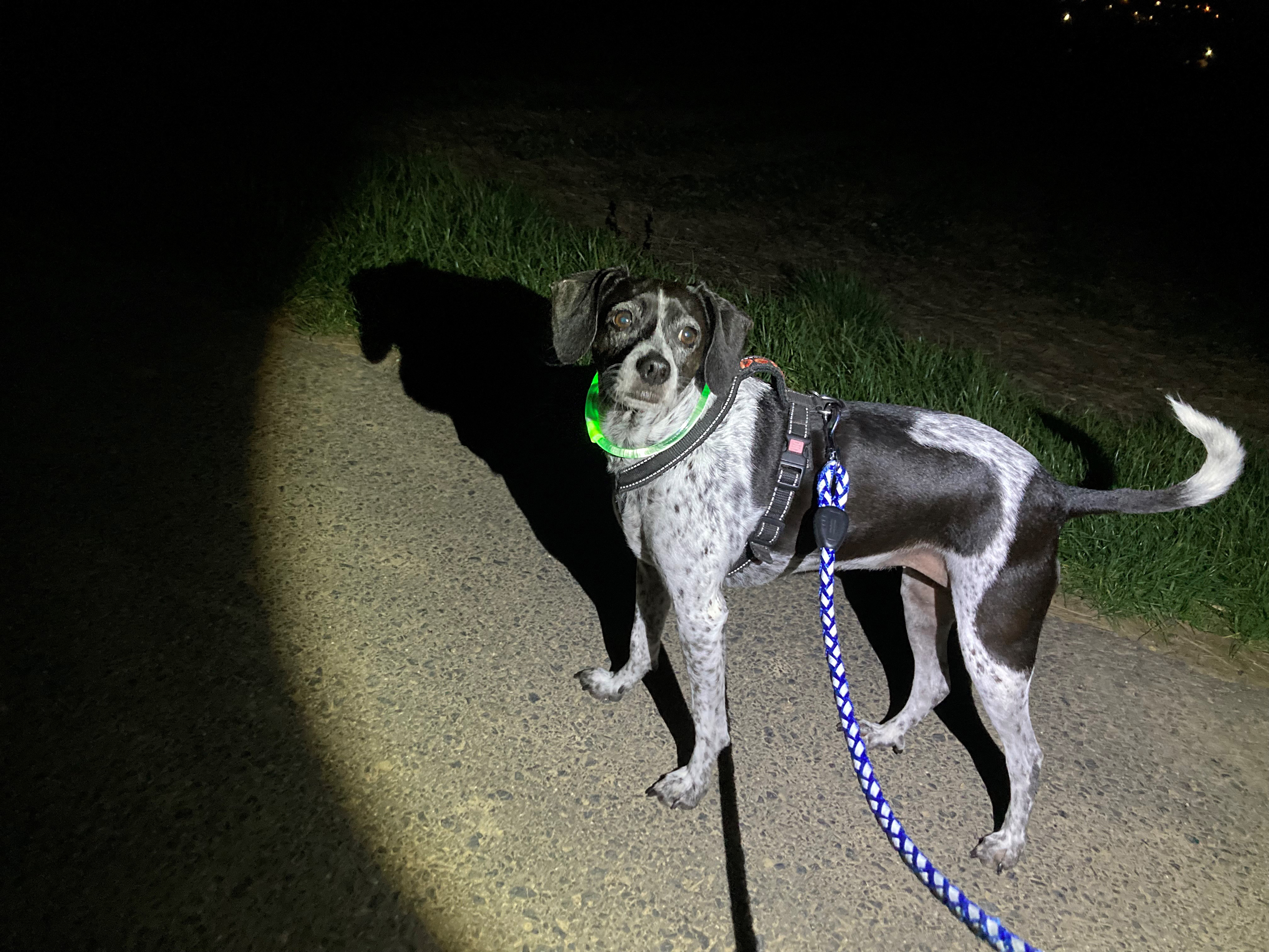 Allerdings endet die Aufgabe nicht bei den Hunden. Auch die zweibeinigen Begleiter:innen sollten sichtbar werden. Es mag sich komisch anfühlen, sich selbst Reflektoren oder Lichter an der Kleidung zu befestigen und beleuchtet durch die Nachbarschaft zu ziehen. Doch es ist wichtig, denn nur so können andere das Mensch-Hund-Team erkennen und sich darauf einstellen. Und eigentlich bringen ein paar bunte Lichter doch auch Farbe in die teilweise trüben Herbsttage. Auf unbeleuchteten Wegen ist es zudem praktisch, selbst eine Taschenlampe mitzunehmen: Zum einen wird so der Weg sichtbar und Stolperfallen können umgangen werden, zum anderen lassen sich die Hinterlassenschaften des Hundes um einiges besser wiederfinden und entsorgen, wenn man sie sehen kann.