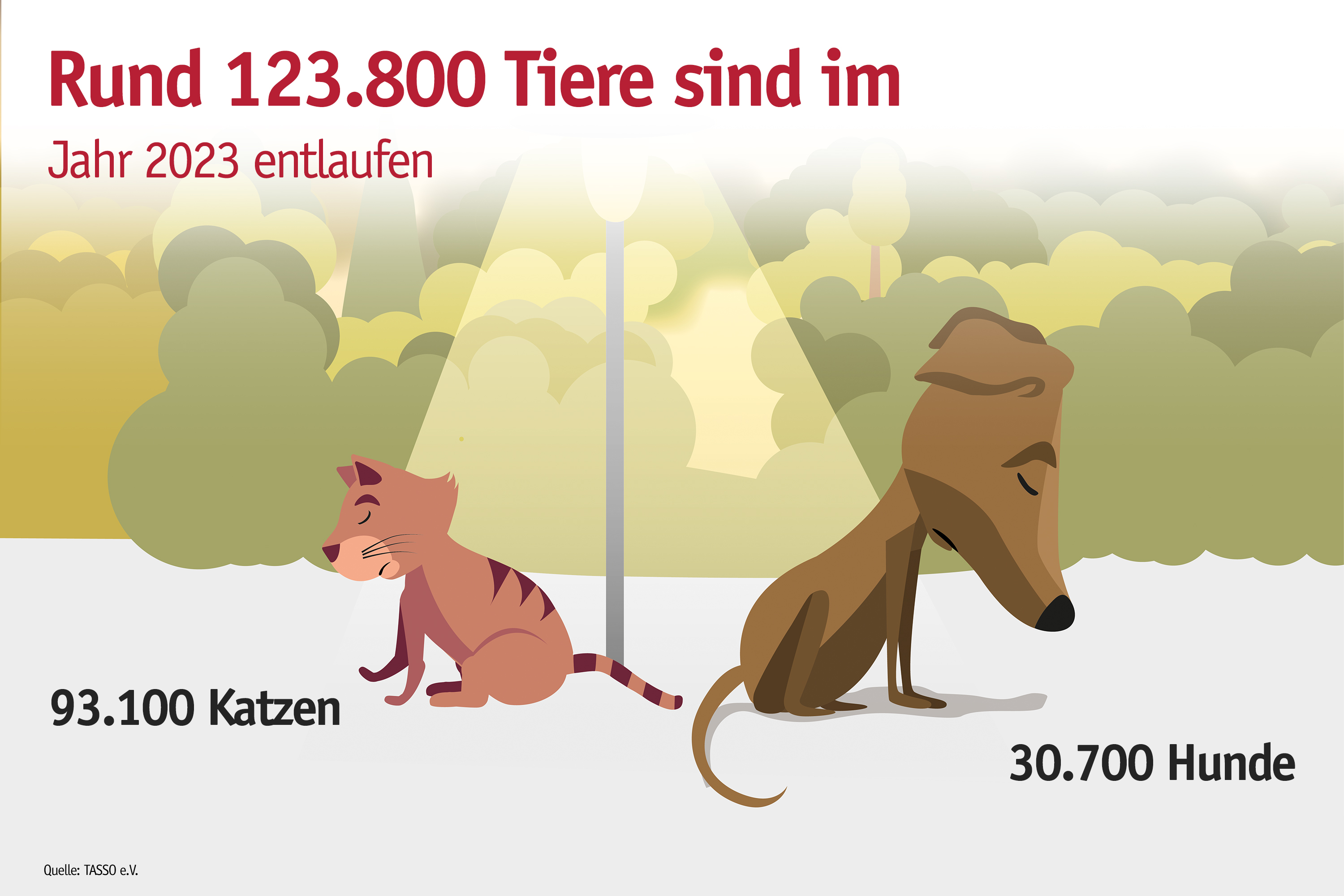* Die Zahlen beziehen sich ausschließlich auf die bei TASSO gemeldeten Tiere. Es fließen nur die Fälle ein, die uns gemeldet wurden. Die Zahlen sind gerundet.