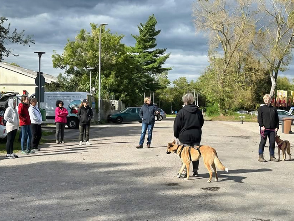 Die teilnehmenden Mensch-Hund-Teams erleben unterschiedliche Situationen, bei denen es beispielsweise die Leinenführigkeit bzw. Orientierung am Menschen, insbesondere in Begegnungen, und um die Festigung der Bindung und des Vertrauensverhältnisses geht. Dabei wird gefilmt, sodass wir das Videomaterial anschließend gemeinsam anschauen und besprechen können. Dabei gehen wir vor allem auch auf die Körpersprache von Mensch und Hund ein. Anschließend widmen wir uns dann wieder der Praxis. Auch eine Teilnahme als Zuschauerin oder Zuschauer ohne Hund ist möglich. Man profitiert sehr davon, wenn man in Ruhe beobachten kann.
